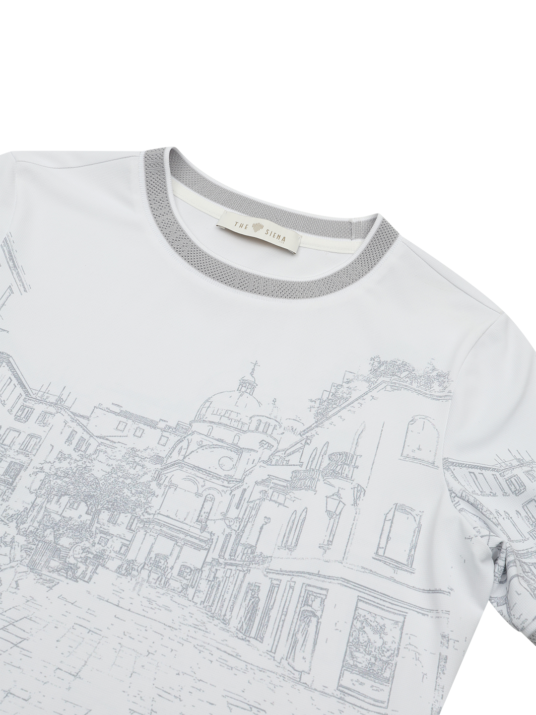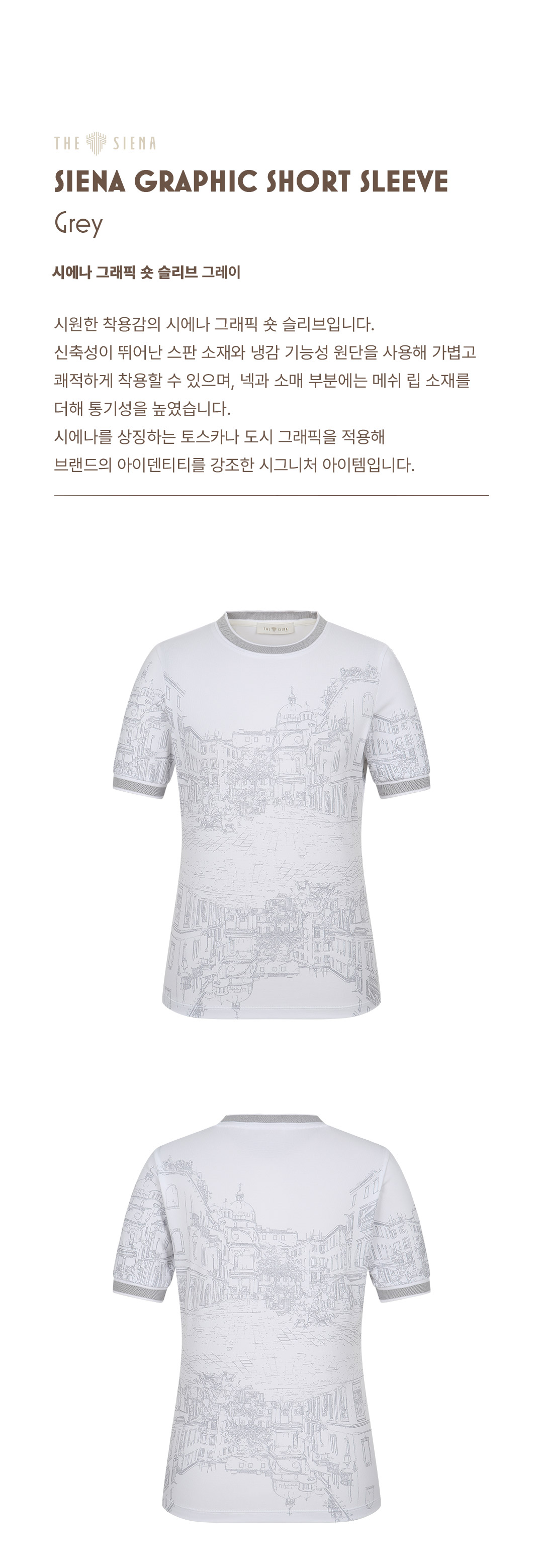 넥과 소매 부분에는 메쉬 립 소재를 더해 통기성을 높였습니다. 시에나를 상징하는 토스카나 도시 그래픽을 적용해
